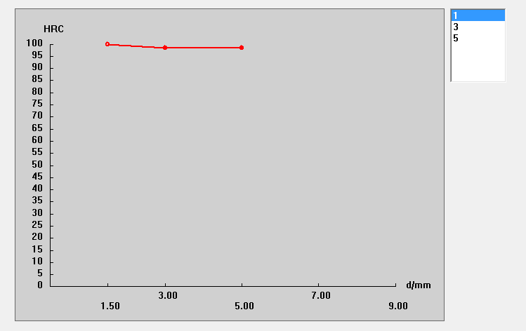 屏幕上方的图表,实时显示已经测量的测试结果。如上图,当前已经完成第1个试样的3个压痕的测量。